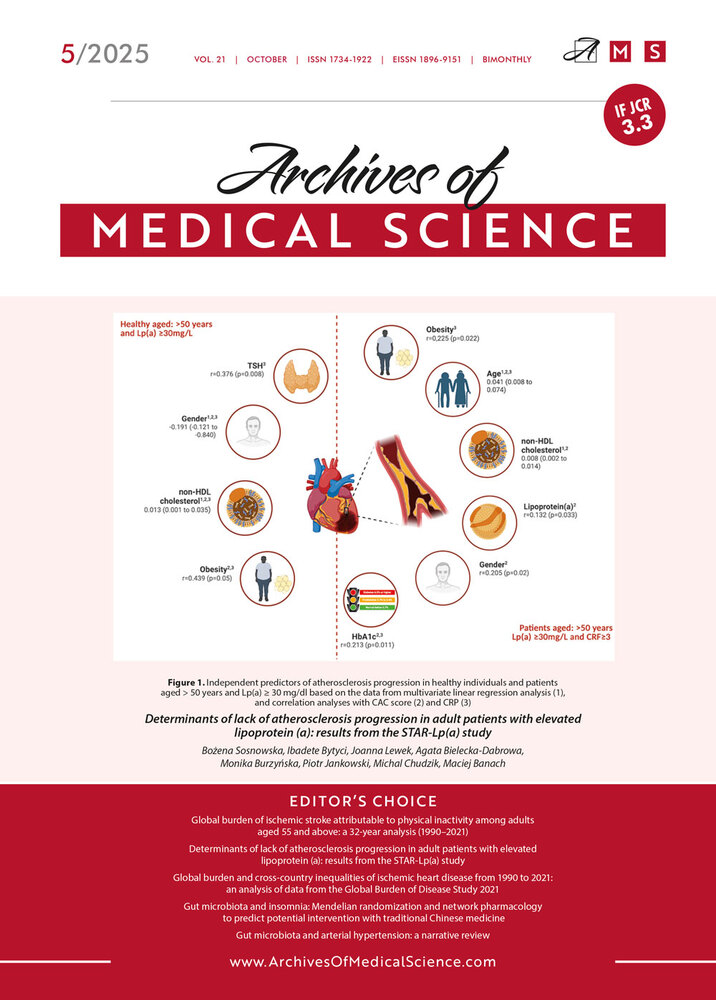 Archives of Medical Science (AMS) publishes high quality original papers and short communications prepared especially by young scientists from all over the world. It is a peer-reviewed journal with international Editorial Board. The second aim of AMS is to present best educational manuscripts written by experienced scientists (reviews, letters to Editor, editorials and research papers) to make this Journal even more interesting for young doctors.