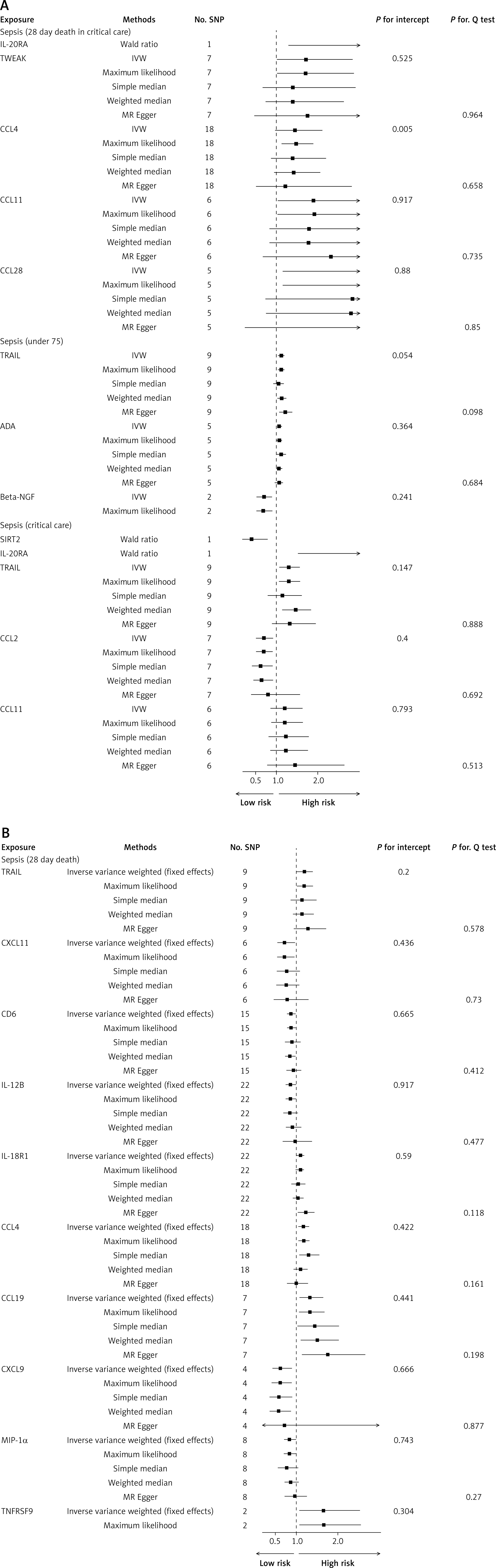 We found the chemokine CCL4 to have the most significant causal relationship with overall 28-day mortality from sepsis. As a chemoattractant for immune cells such as monocytes and macrophages, aberrant CCL4 signaling can propagate harmful inflammation [26]. Our results designate CCL4 as a potential driver of the exaggerated inflammatory response leading to early sepsis death. CCL4 may also serve as a prognostic biomarker, although further longitudinal analyses are required.