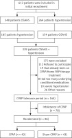 Continuous positive airway pressure (CPAP) is recognized as the most effective therapy for patients suffering from OSAHS [6]. However, it still needs to be clarified whether CPAP is effective in treating hypertension in patients suffering from OSAHS. With regards to the mechanisms by which CPAP affects blood pressure, many previous studies have confirmed that CPAP reduces blood pressure by counteracting sympathetic activation and the renin-angiotensin-aldosterone system (RAAS) [7]. However, there are few studies on the relationship between oxidative stress, inflammation, and CPAP treatment in OSAHS patients with hypertension [8]. We hypothesized that CPAP might be efficacious in treating hypertension in patients with OSAHS, and designed this randomized controlled trial to test the conjecture. In addition, in this study, we explored the underlying mechanism whereby CPAP lowers blood pressure, which may provide theoretical support for CPAP as a convincing treatment in addition to drugs.