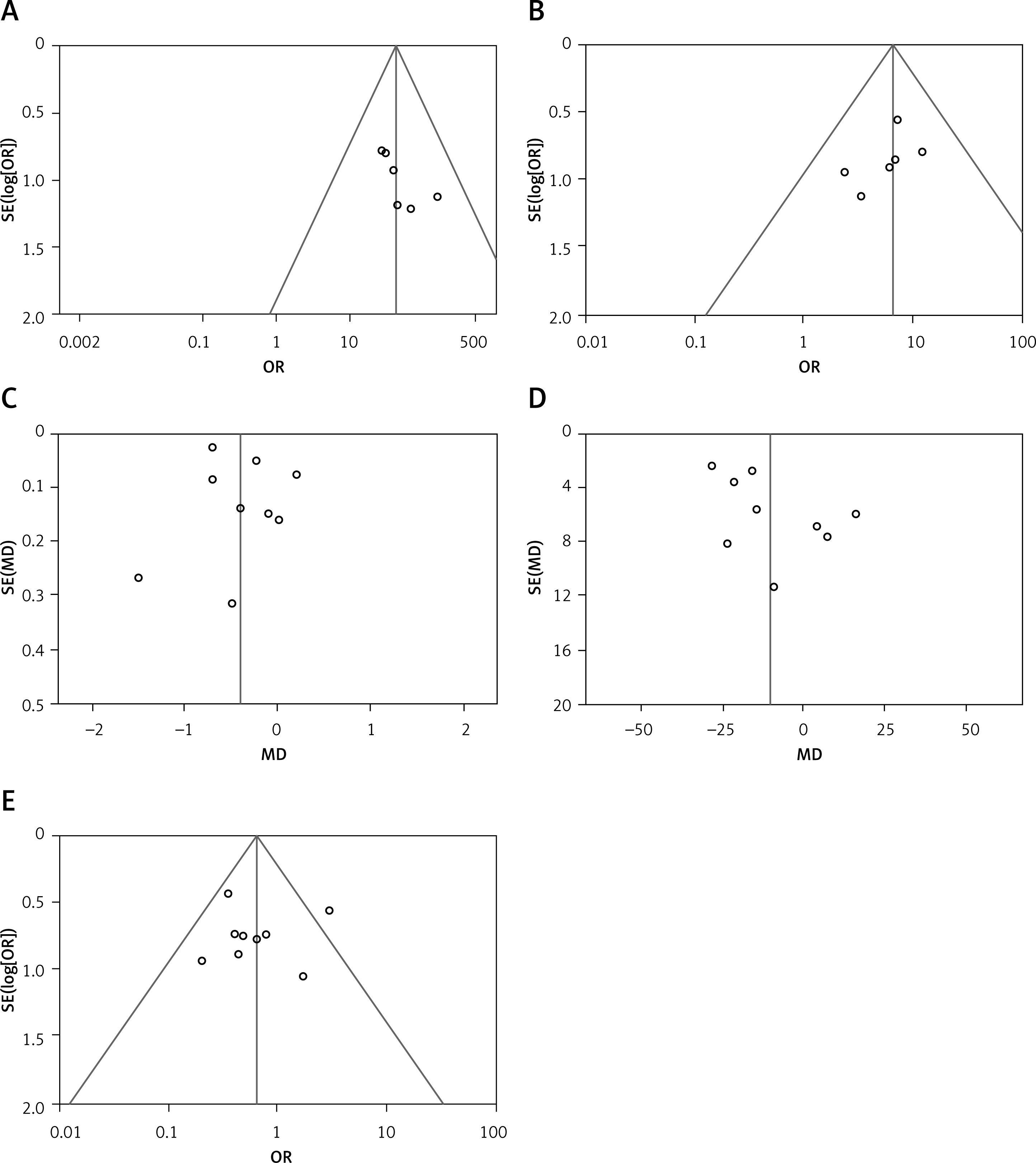 Analyses were conducted using RevMan 5.4 software provided by the Cochrane Collaboration. Odds ratios (OR) were used as effect analysis statistics for dichotomous variables; in the case of continuous data, the mean difference (MD) was used. Forest plots were constructed, and heterogeneity and publication bias tests were performed. The heterogeneity test between studies was performed using the Q test and I2 value. The study results did not show heterogeneity between them when p > 0.10 and F ≤ 50%; otherwise, random effects were used. Statistical significance was determined using a p-value < 0.05.