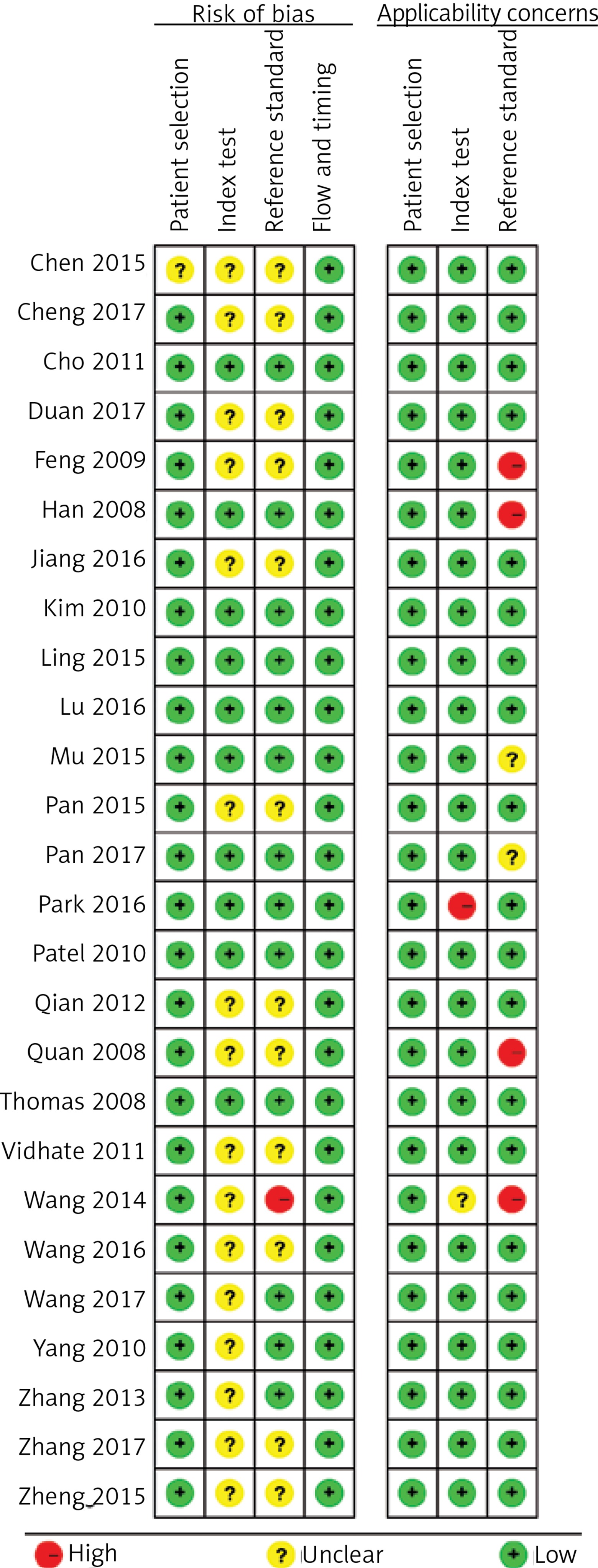 The methodological quality of the studies was assessed using the Quality Assessment of Diagnostic Accuracy Studies-2 (QUADAS-2) tool by two independent researchers. All disagreements were resolved by consensus.