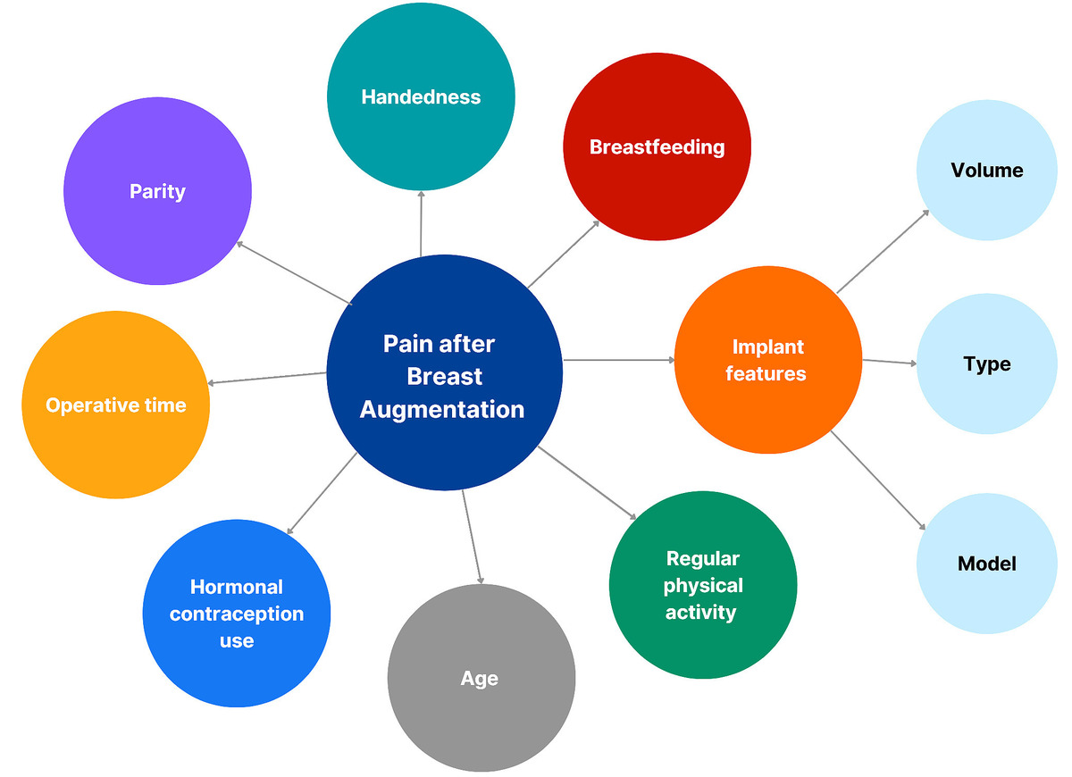 Postoperative pain following breast augmentation is multifactorial. Most patient- and procedure-related variables, including implant type and model, had a limited long-term impact. Detailed pain monitoring may guide individualized analgesic strategies, optimize perioperative care, and support opioid-sparing approaches.