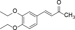 From 12, compound 14 (Figure 6) was obtained after flash chromatography (ethyl acetate : petroleum ether 1 : 5) as a yellow solid (0.42 g, 92%): mp 145–147°C; 1H NMR δ 1.49 (t, J = 6.8 Hz, 3H), 2.35 (s, 3H), 3.92 (s, 3H), 4.13 (q, J = 6.8 Hz, 2H), 6.61 (d, J = 16.4 Hz, 1H), 6.87 (d, J = 8.4 Hz, Ar, 1H), 7.07 (d, J = 2 Hz, Ar, 1H), 7.15 (dd, J = 2, 8.4 Hz, 1H), 7.45 (d, J = 16.4 Hz, 1H); 13C NMR δ 14.72, 27.33, 56.01, 64.36, 110.97, 111.23, 122.91, 125.17, 127.25, 143.66, 148.57, 151.62, 204.49; Anal. Calcd. for C13H16O3: C, 70.89; H, 7.32; Found: C, 70.94; H, 7.36.