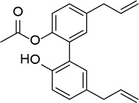[i] *Aurone derivatives: compounds 1 (monomer) and 2 (dimer); zingerone derivatives: compounds 3 (zingerone, monomer), 4 (zingerone, dimer) and 5 (dimer); dehydrozingerone derivatives: compounds 6 (dehydrozingerone, monomer), 7 (dehydrozingerone, dimer), 8 (monomer) and 9 (dimer), 16 (OEt-dehydrozingerone, monomer), 17 (OEt-dehydrozingerone, dimer); vanillyl alcohol methyl esters: compounds 10 (monomer) and 11 (dimer); ethyl vanillin 3-buten-2-one derivatives: compounds 12, 14 and 18 (monomers); 13,15 and 19 (dimers); glucosylated dehydrozingerone compounds: compounds 20 (monomer) and 21 (dimer); 4-(3-hydroxybutil-3-on) phenol (raspberry ketone): compounds 22 (raspberry ketone, monomer) and 23 (raspberry ketone, dimer); salicylaldehyde and its 4,4’-dihydroxybiphenyl derivative: compounds 24 (monomer) and 25 (dimer); prenylated phenol and 4,4’-dihydroxybiphenyl derivative: compounds 26 (monomer) and 27 (dimer); chalcones and 4,4’-dihydroxybiphenyl chalcones: compounds 28 and 30 (monomers); 29 and 31 (dimers); magnolol: compound 32 (magnolol), and methylmagnolol derivatives: compounds 33 and 34; monoacetylmagnolol: compound 35, and diacetylmagnolol: compound 36. **The solubility of all compounds was 15 mg/ml in DMSO (dimethyl sulfoxide), and concentrations of 10 mg/ml DMSO were used in this study for all compounds tested.