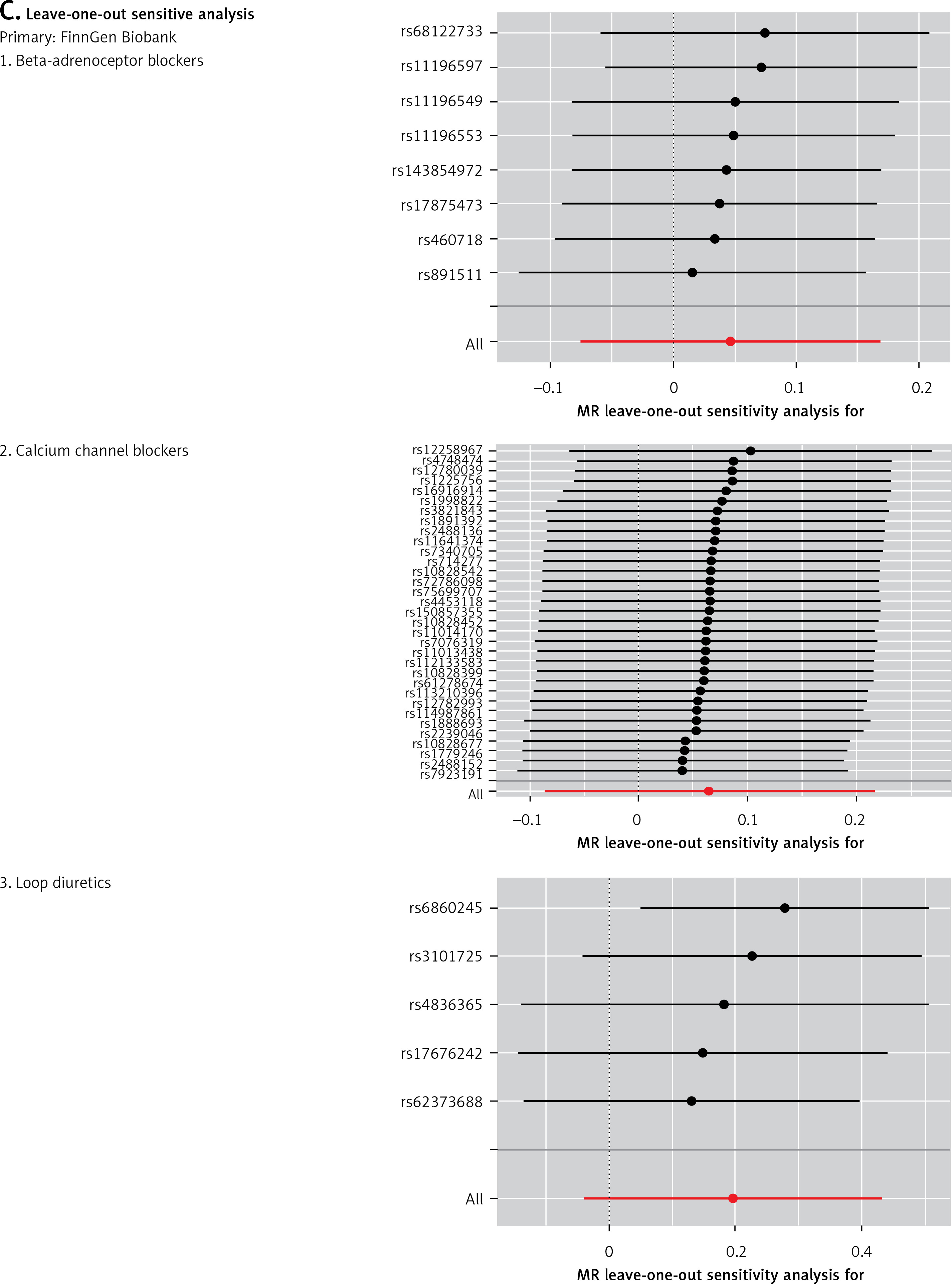 For statistical analysis, the IVW approach was used as the primary method for MR analysis. In this MR study, we conducted multiple tests (evaluating various antihypertensive medicines) with Bonferroni correction. In MR studies, the inverse variance weighted (IVW) method is a widely utilized statistical approach for estimating causal effects [12]. This method operates by calculating a weighted average of the effect estimates from multiple genetic variants (e.g., single nucleotide polymorphisms – SNPs), where the weights correspond to the inverse of the variance (i.e., the squared standard errors) of each genetic variant’s effect estimate. Specifically, the IVW approach employs a regression model that excludes an intercept term and incorporates the inverse of the outcome variance as weights during fitting. This methodology assumes that all genetic variants serve as valid instrumental variables (IVs) and satisfy three core MR assumptions: (1) the relevance assumption, (2) the independence assumption, and (3) the exclusion restriction assumption. When these assumptions hold, the IVW method provides consistent and unbiased estimates of the causal effect.
