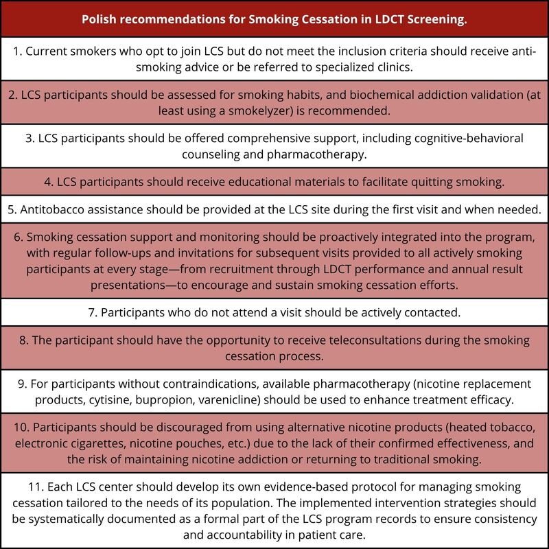 Polish consensus on smoking cessation intervention within lung cancer screening