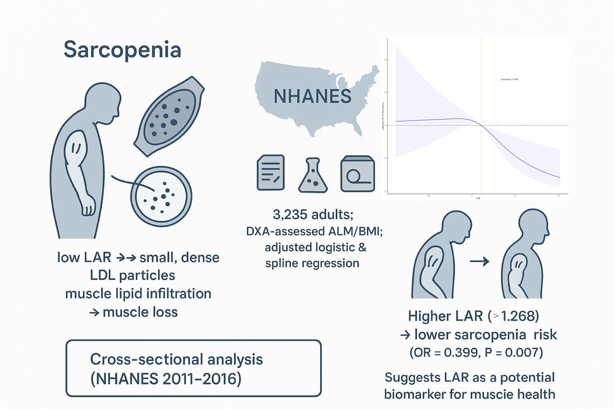 Elevated LAR is significantly associated with lower sarcopenia risk, suggesting its potential role as a biomarker for muscle health. Further studies are needed to elucidate underlying mechanisms and validate these findings prospectively.