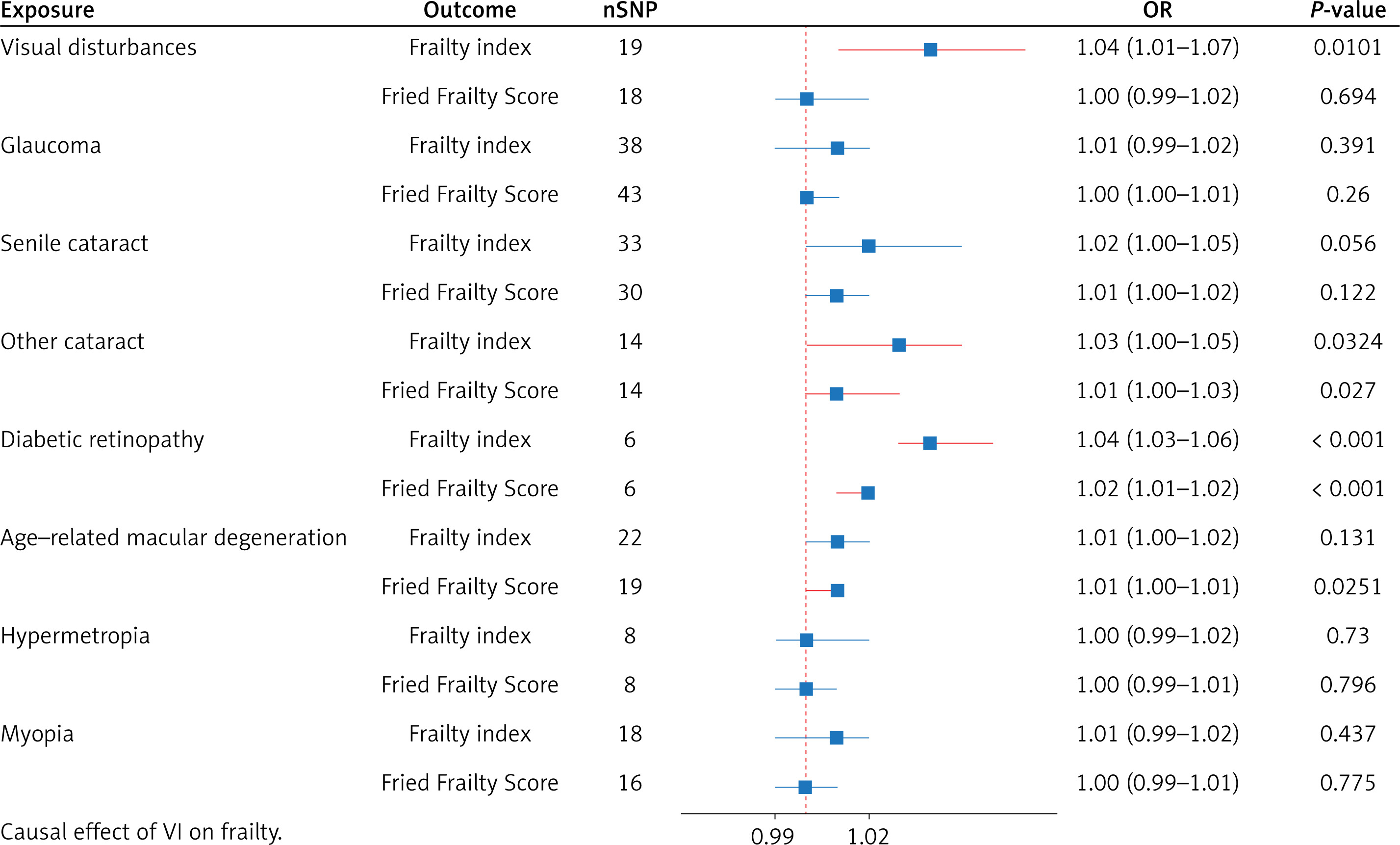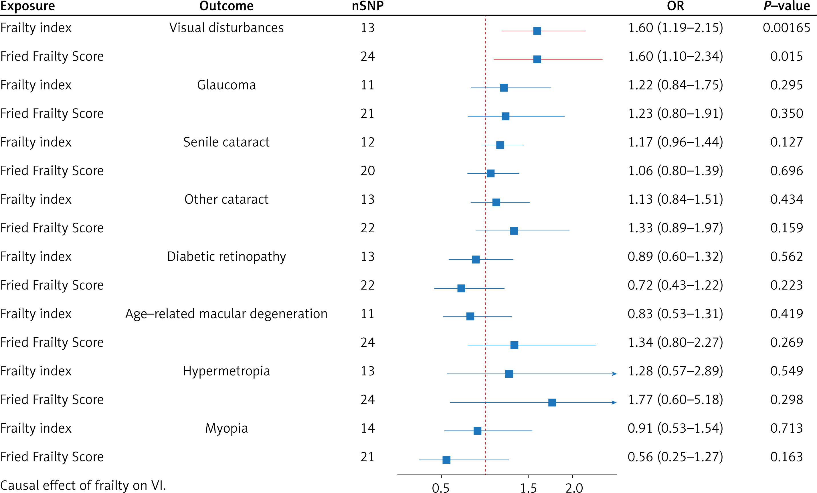 Causal effect of VI on frailty